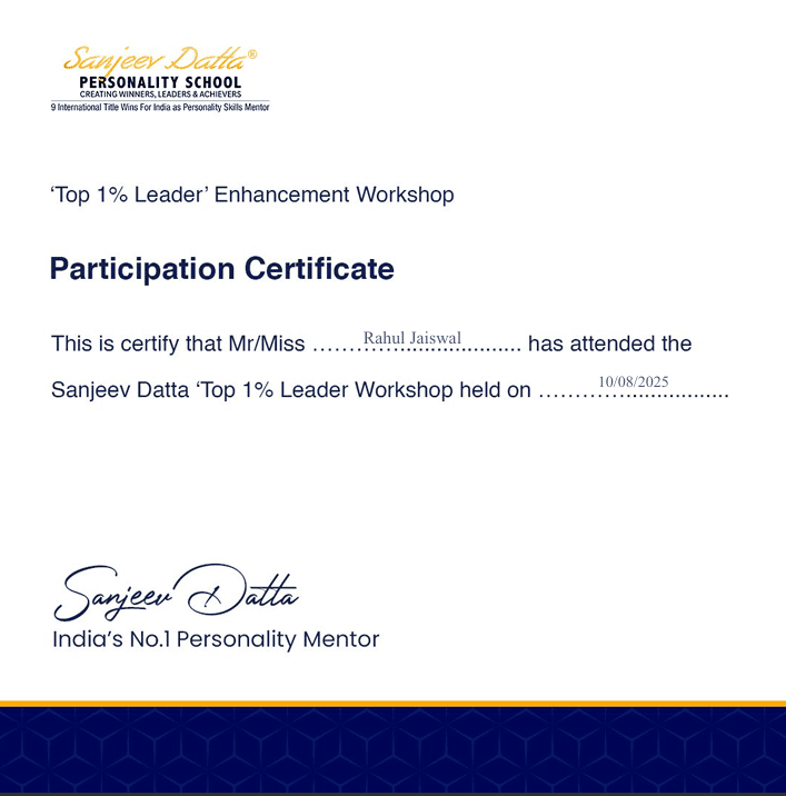 I came across Sanjeev Datta’s ads on YouTube many times about leadership, so I decided to attend this workshop. However, I found the content to be quite limited. In the session, they only talked about a few headline topics and conducted some focus-based activities. The workshop was positioned as a mix of Personality Development and Leadership.
