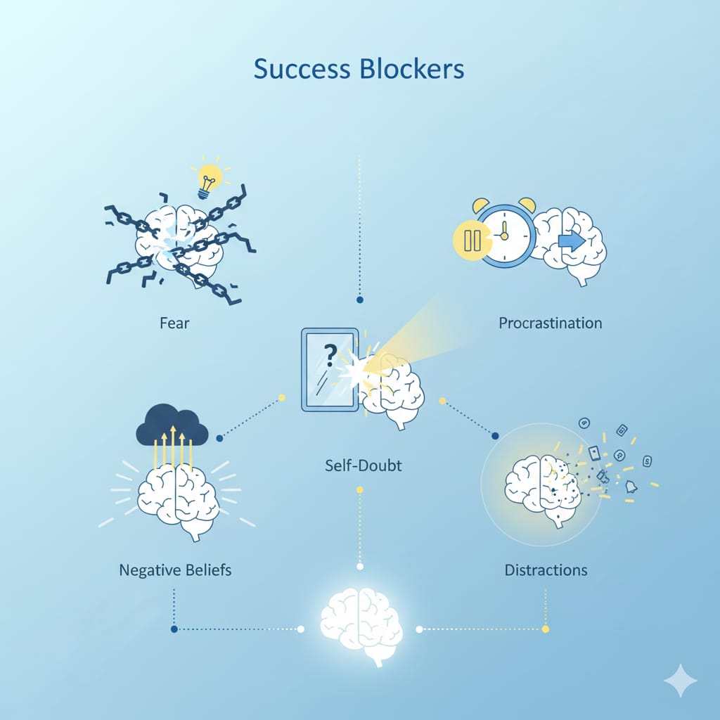 | 1. Identifying Your Success Blockers The workshop begins by participants recognize their success blockers — the internal factors that prevent growth, such as: Procrastination Past trauma Self-doubt Negative thinking According to Dr. Meghana Dikshit, these mental blocks silently control decisions and limit progress in life and career. |