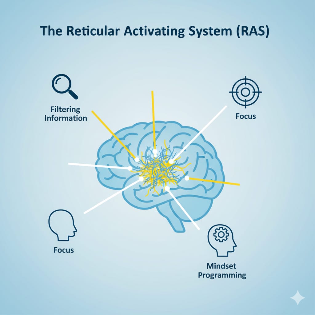 | 6. Reticular Activating System (RAS): The Brain’s Gatekeeper She explains the Reticular Activating System (RAS) — often called the gatekeeper of the brain — and how it filters information based on what we focus on. |